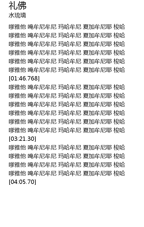 | [01:16.579] | dia ya ta an mu ni mu ni ma ha mu ni xia jia mu ni ye suo ha |