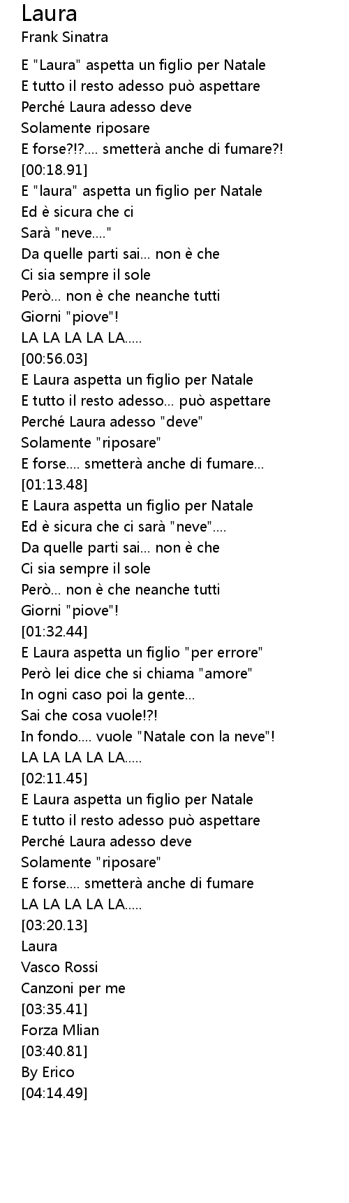 | [00:20.48] | E "laura" aspetta un figlio per Natale |