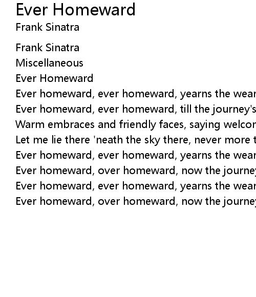 | Ever homeward, ever homeward, yearns the weary rover, | |