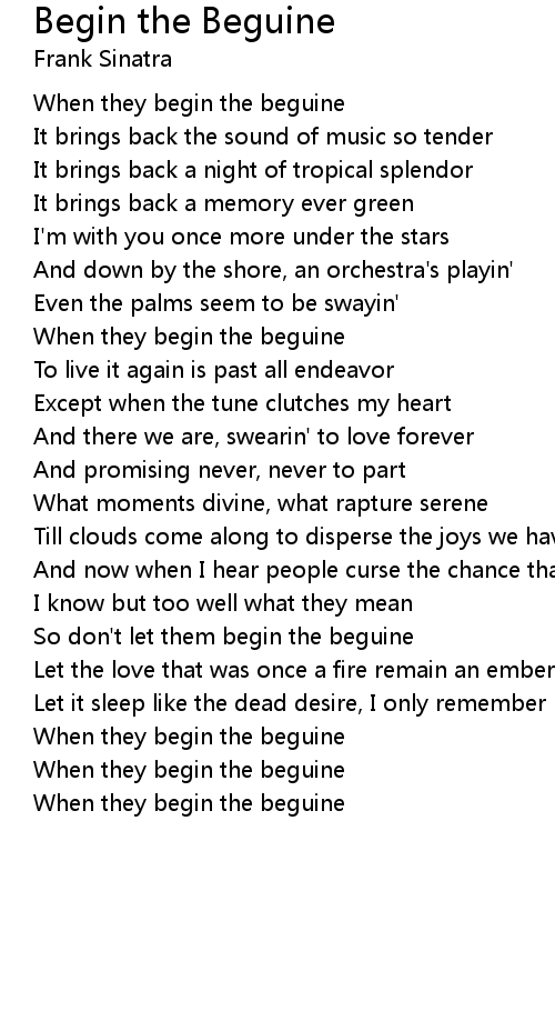 So don't let them begin the beguine |