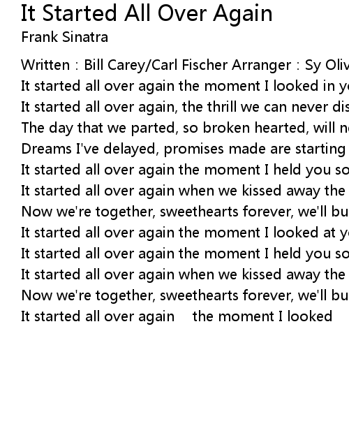 | It started all over again when we kissed away the night, the dawn's early light | |