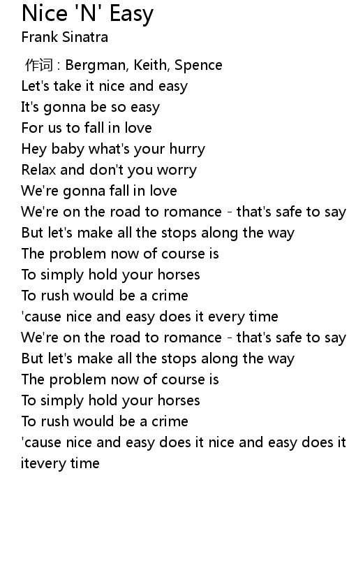 | [02:06.08] | 'cause nice and easy does it nice and easy does it nice and easy does itevery time |