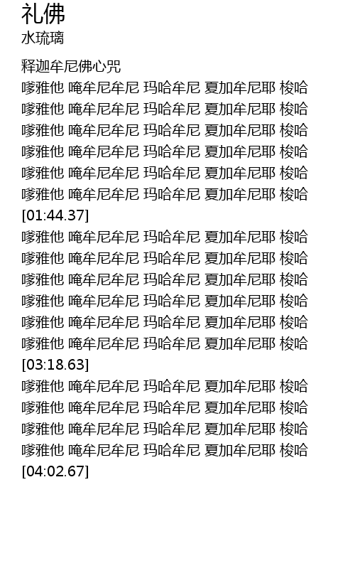 | [00:16.84] | 释迦牟尼佛心咒 |