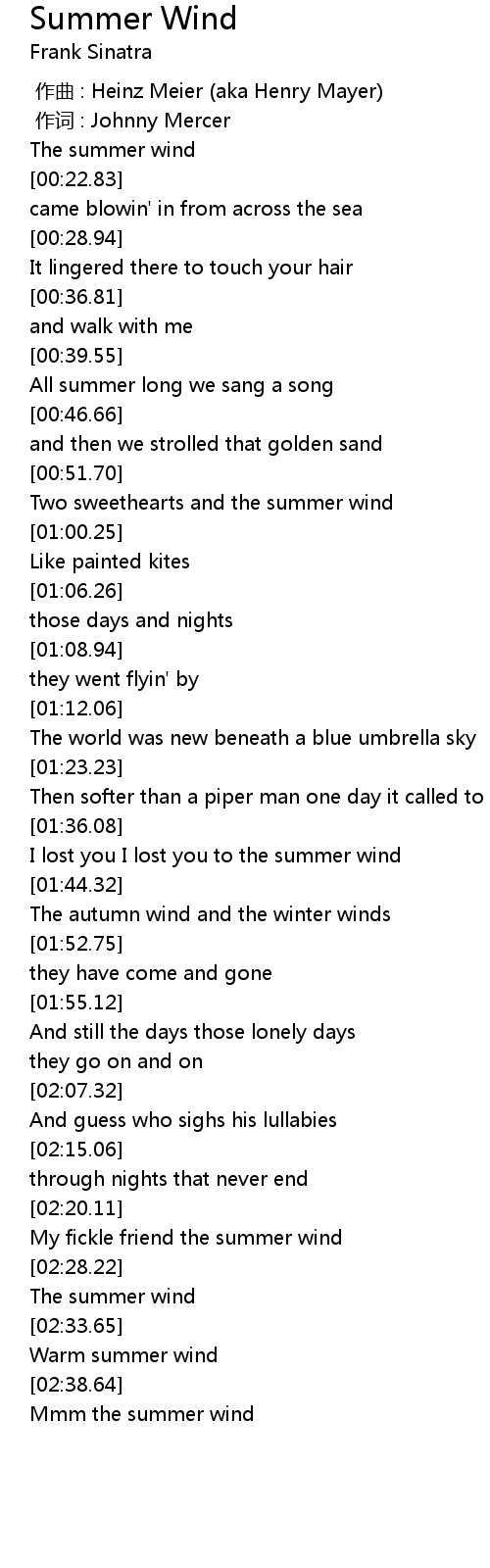 | [01:38.58] | I lost you I lost you to the summer wind |