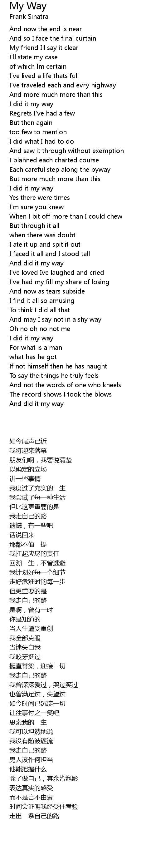 And so I face the final curtain |