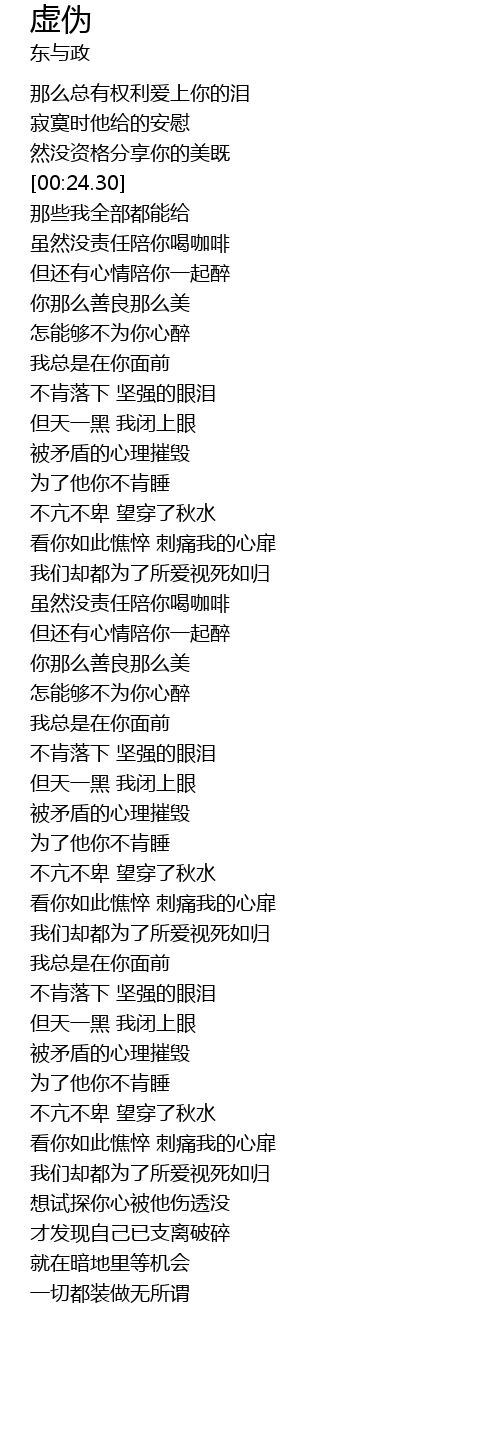 | [00:24.30] | 那么总有权利爱上你的泪 |