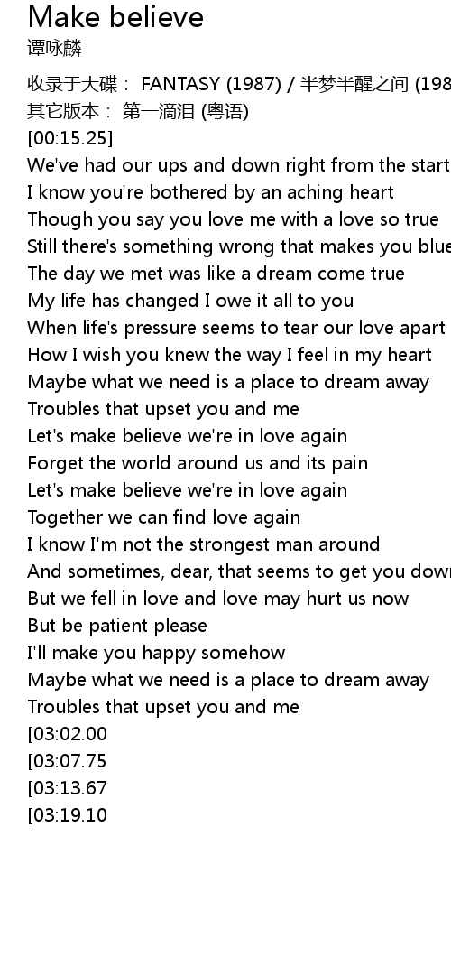 | [03:25.58][03:02.00] | Let's make believe we're in love again |