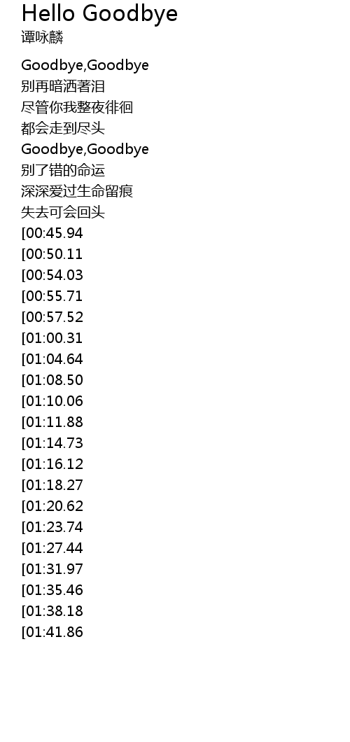 | [02:44.83][01:23.74] | Goodbye,Goodbye |