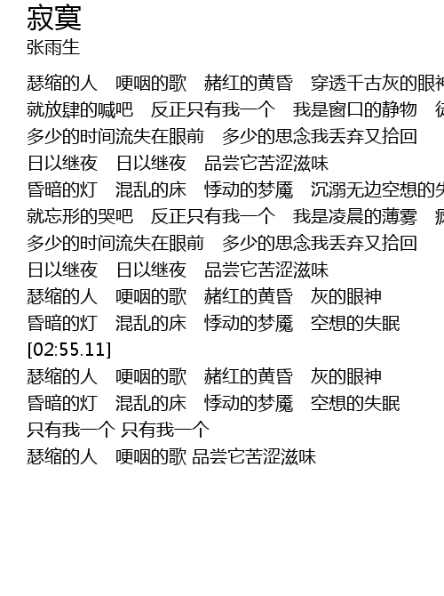 | [02:25.59] | rì yǐ jì yè rì yǐ jì yè pǐn cháng tā kǔ sè zī wèi |