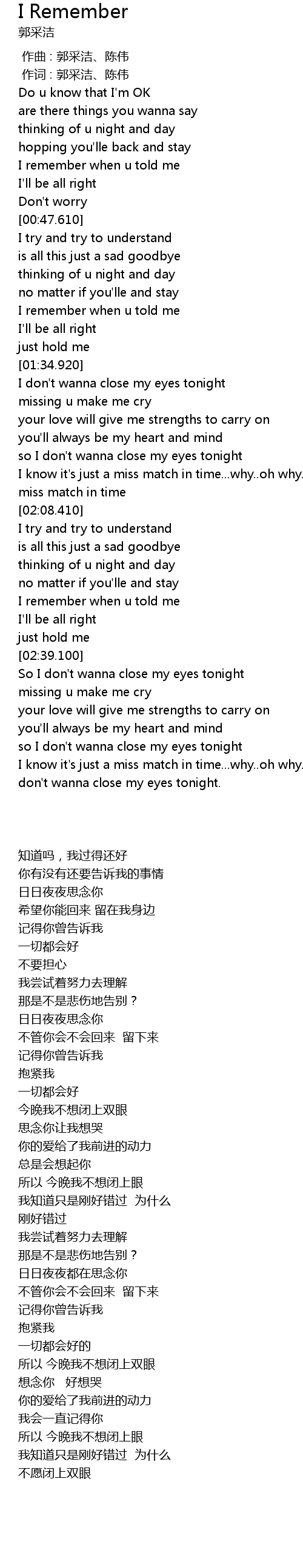 | [01:36.910] | I don't wanna close my eyes tonight |