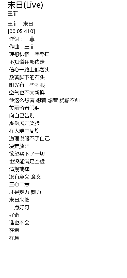 | [00:02.390] | 王菲 - 末日 |