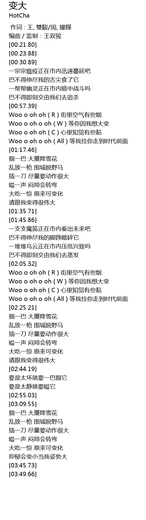| [01:01.93] | Woo o oh o oh ( W ) 等你因我想大变 |