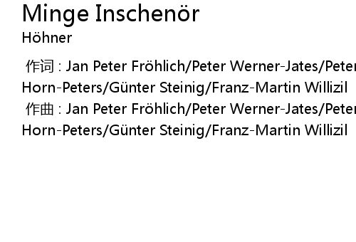 | [00:00.000] | zuo ci : Jan Peter Fr hlich Peter WernerJates Peter HornPeters Gü nter Steinig FranzMartin Willizil |