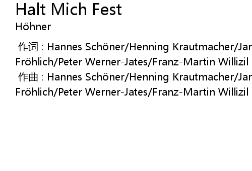 | [00:00.000] | 作曲 : Hannes Schöner/Henning Krautmacher/Jan Peter Fröhlich/Peter Werner-Jates/Franz-Martin Willizil |