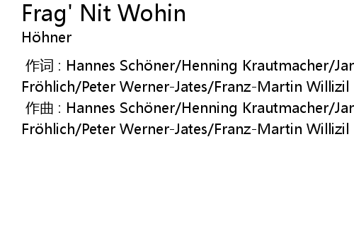 | [00:00.000] | 作词 : Hannes Schöner/Henning Krautmacher/Jan Peter Fröhlich/Peter Werner-Jates/Franz-Martin Willizil |