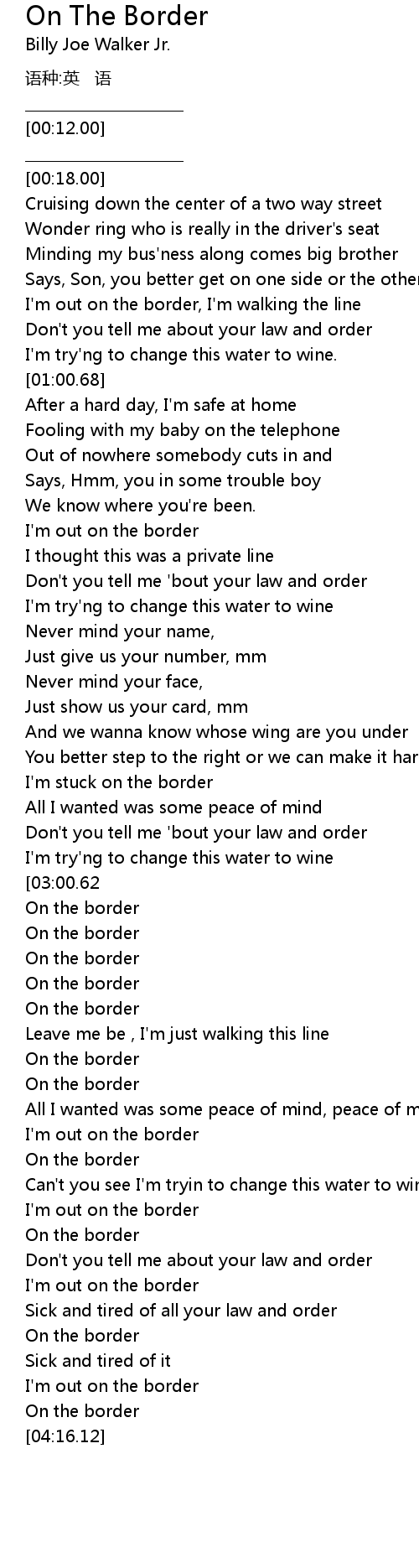 | 歌曲 | On The Border |