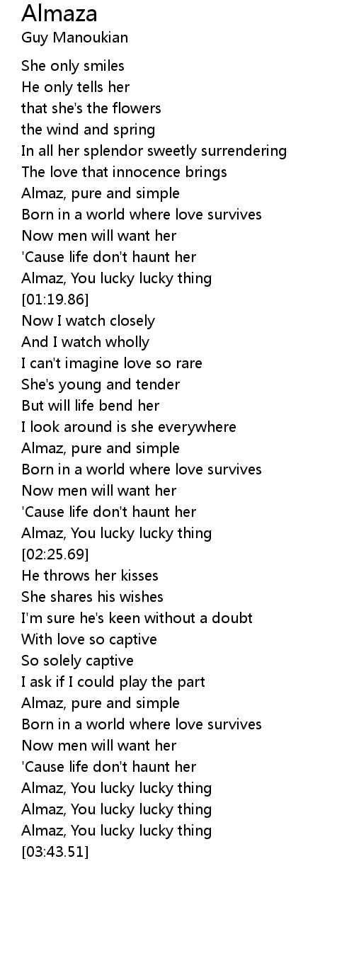 [03:29.92] Almaz, You lucky lucky thing