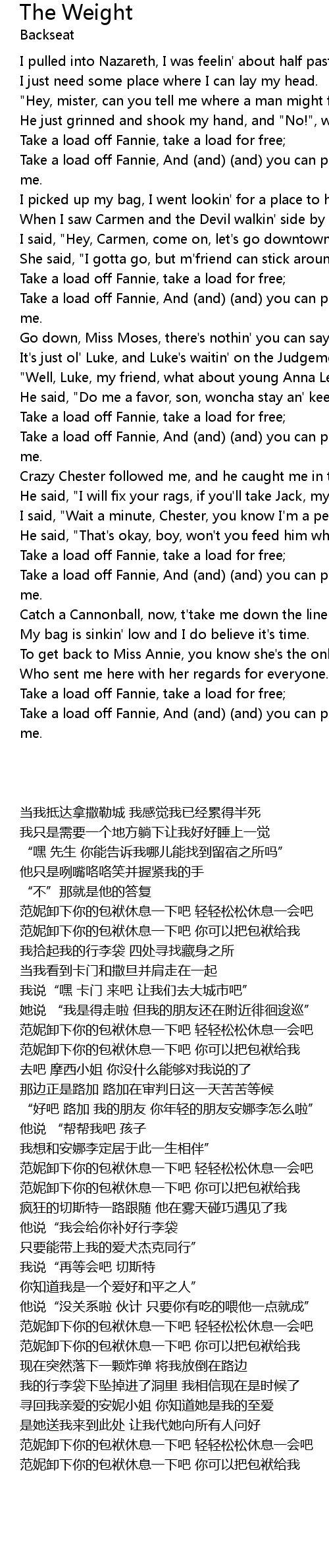 [01:33.38] 范妮卸下你的包袱休息一下吧 你可以把包袱给我
