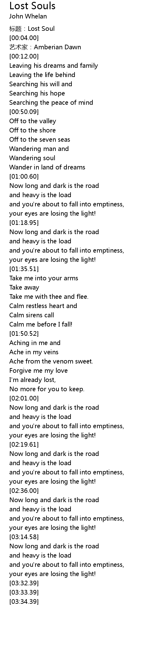 | [00:00.00] | 标题:Lost Soul |