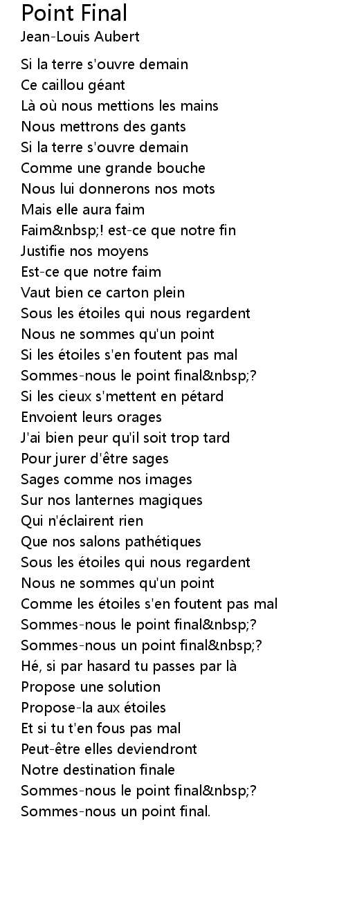 | Sommesnous le point final nbsp? | |