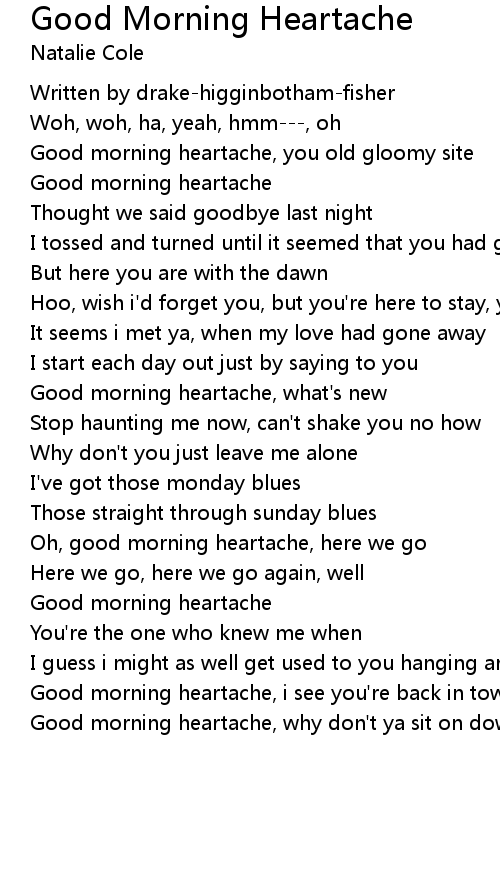 Good morning heartache, why don't ya sit on down, sit down ------ |