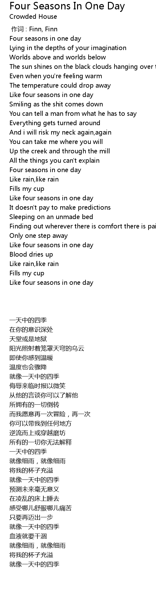 Four Seasons In One Day 歌词