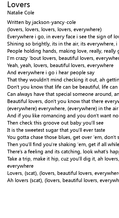 Beautiful lovers, don't you know that there everywhere, lovers, beautiful lovers |