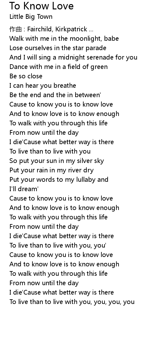 | Cause to know you is to know love | |
