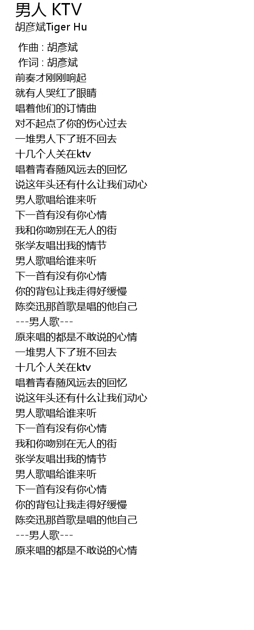 | 歌曲 | 男人 KTV |