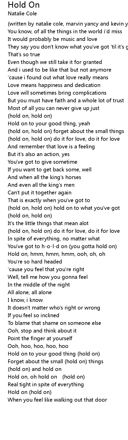 | Hold on, oh hold on (hold on) | |