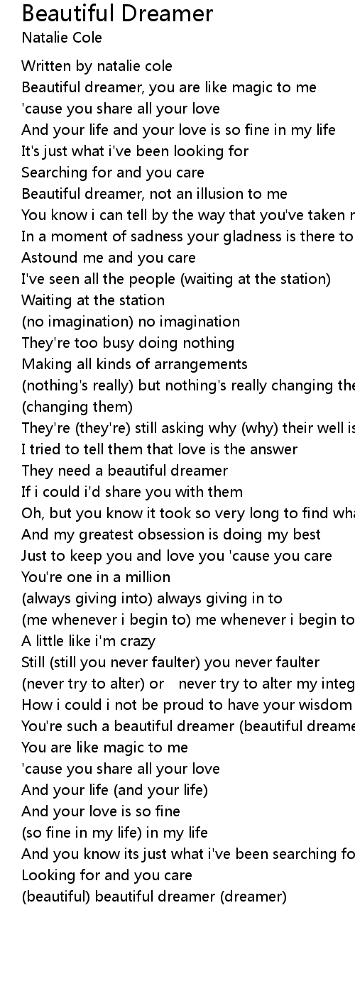 | You' re such a beautiful dreamer beautiful dreamer | |