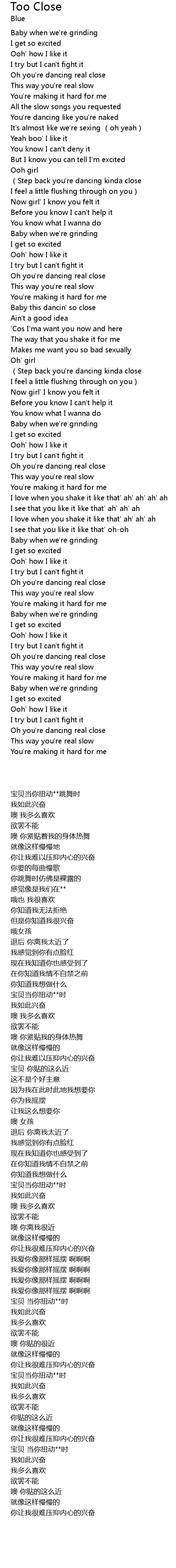 | 歌曲 | Too Close |