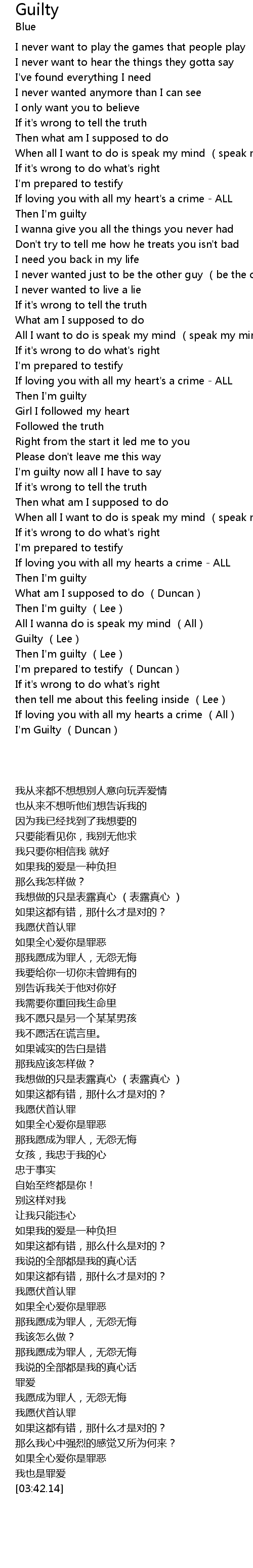 | [03:04.67] | Then I'm guilty (Lee) |