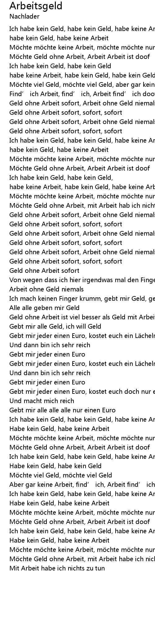 | Ich habe kein Geld, habe kein Geld, habe keine Arbeit | |