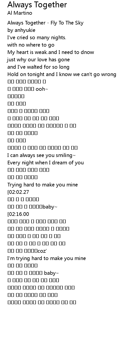 | [00:01.72] | Always Together Fly To The Sky |
