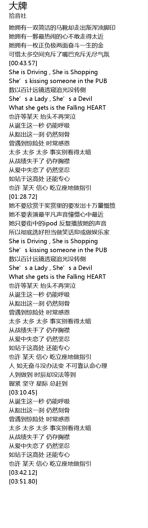 | [03:21.72] | tai duo tai duo tai duo shi shi bie kan de tai an |
