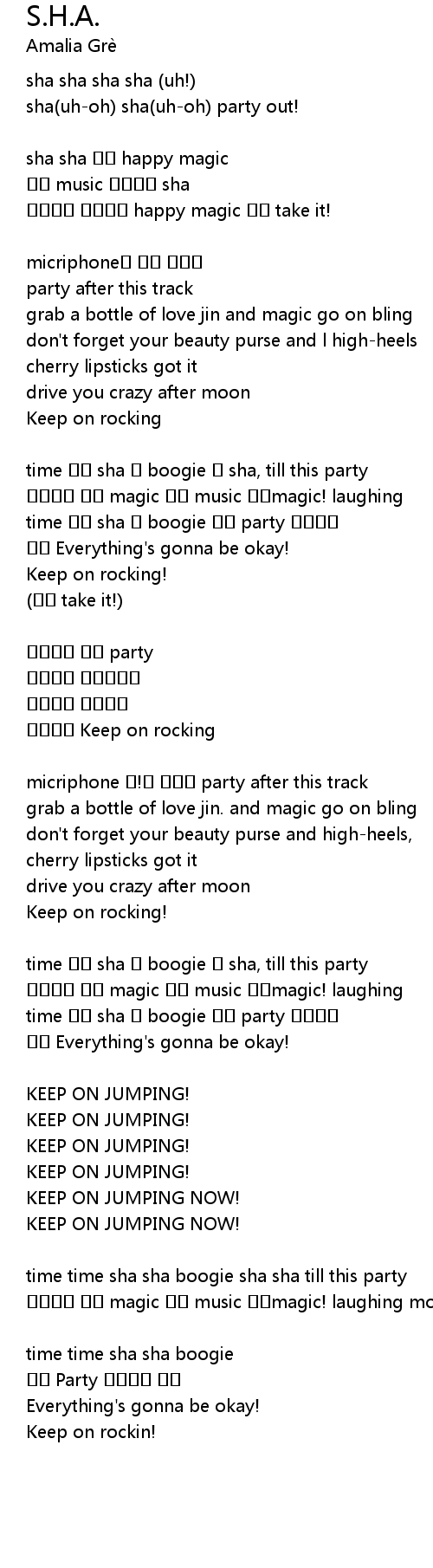 | time 타임 sha 샤 boogie 샤 sha, till this party | |
