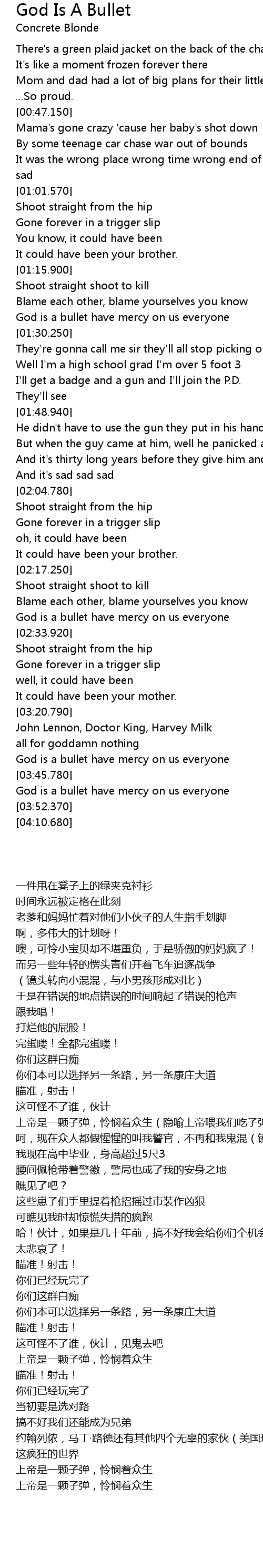 | [03:28.750] | God is a bullet have mercy on us everyone |