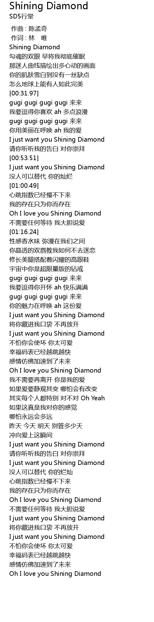 | [01:31.74] | yǔ zhòu zhōng nǐ shì chāo xiàn liàng bǎn de zuàn jiè |