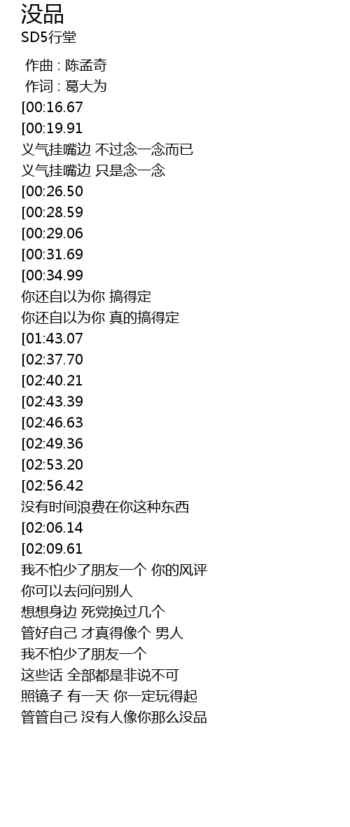 | [03:03.15][02:37.70][01:43.58][00:41.90] | 想像不到你 是那么没品 |