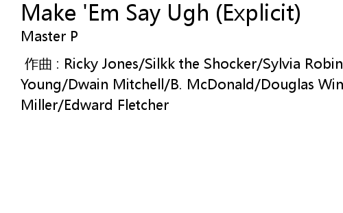 | [00:00.000] | 作曲 : Ricky Jones/Silkk the Shocker/Sylvia Robinson/George Young/Dwain Mitchell/B. McDonald/Douglas Wimbush/Craig Derry/Vyshonne King Miller/Edward Fletcher |