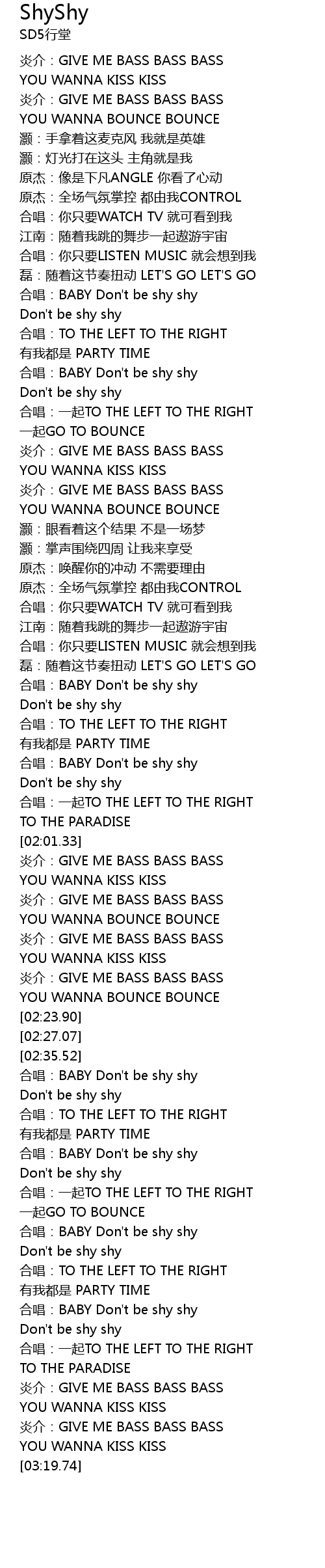 | [03:03.43] | he chang: BABY Don' t be shy shy |
