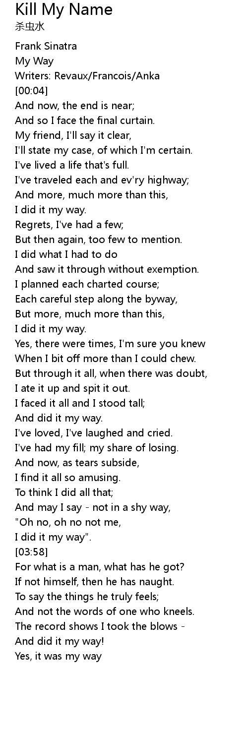 | [03:09] | I did it my way". |