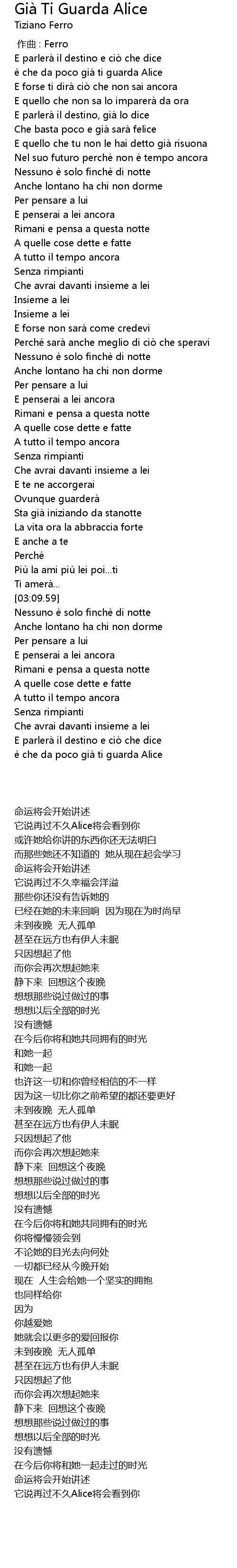 | [03:52.27] | è che da poco già ti guarda Alice |