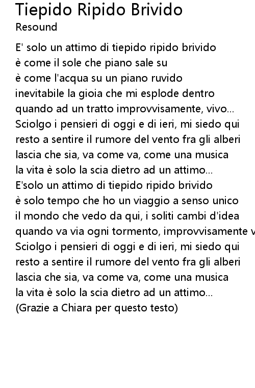 | 歌曲 | Tiepido Ripido Brivido |