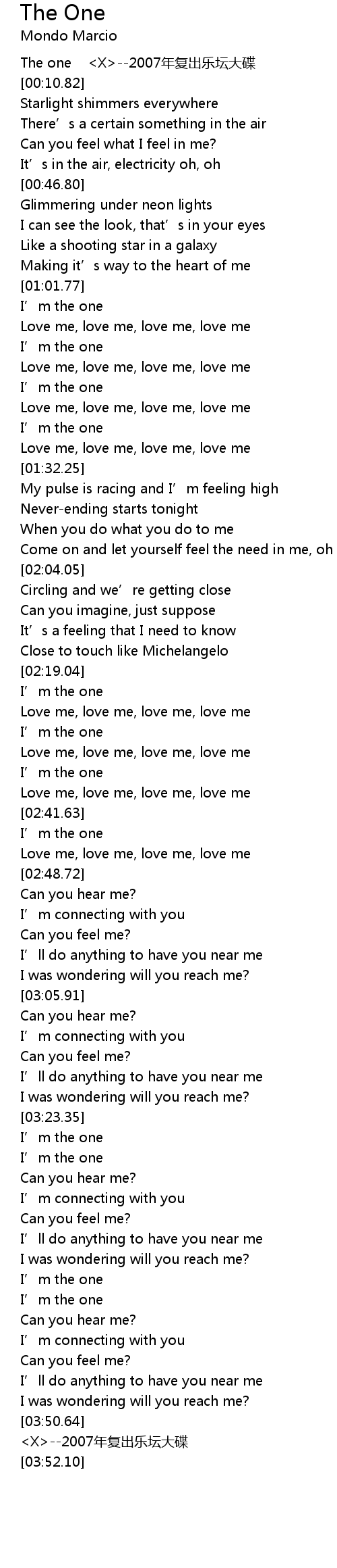 | [00:02.52] | The one <X>--2007年复出乐坛大碟 |