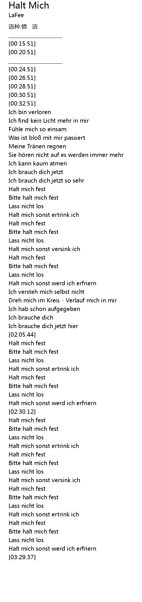 | [02:15.07] | Halt mich sonst ertrink ich |