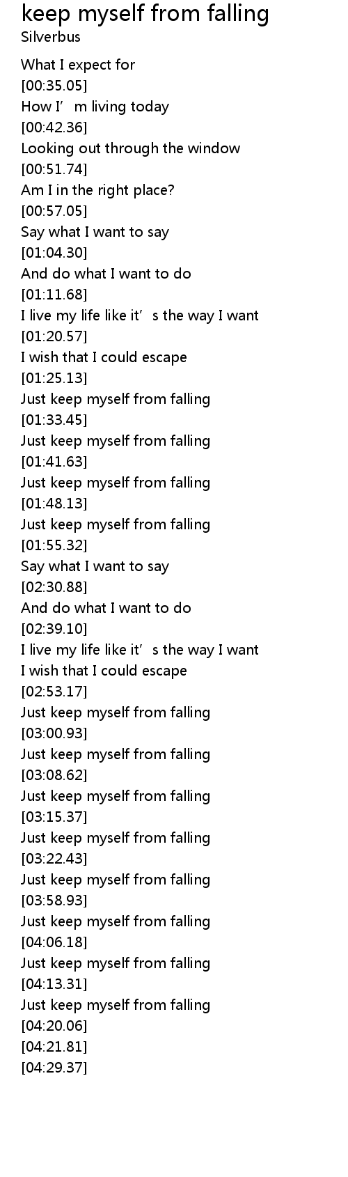 | [01:35.57] | Just keep myself from falling |