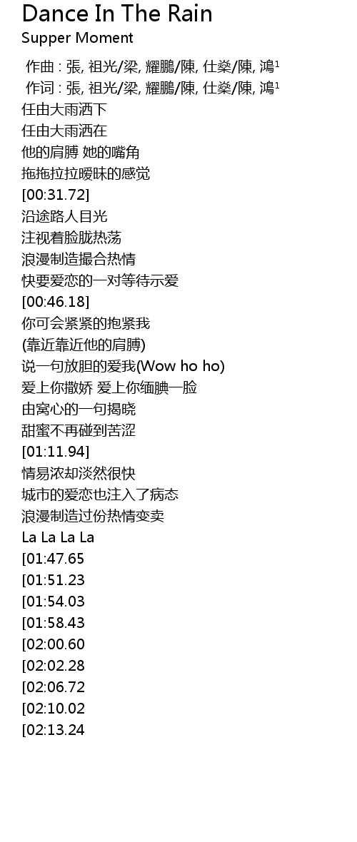 | [02:55.86][01:51.23] | (靠近靠近他的肩膊) |