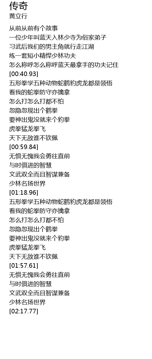 | [00:33.13] | 练一套短小精悍少林功夫 |
